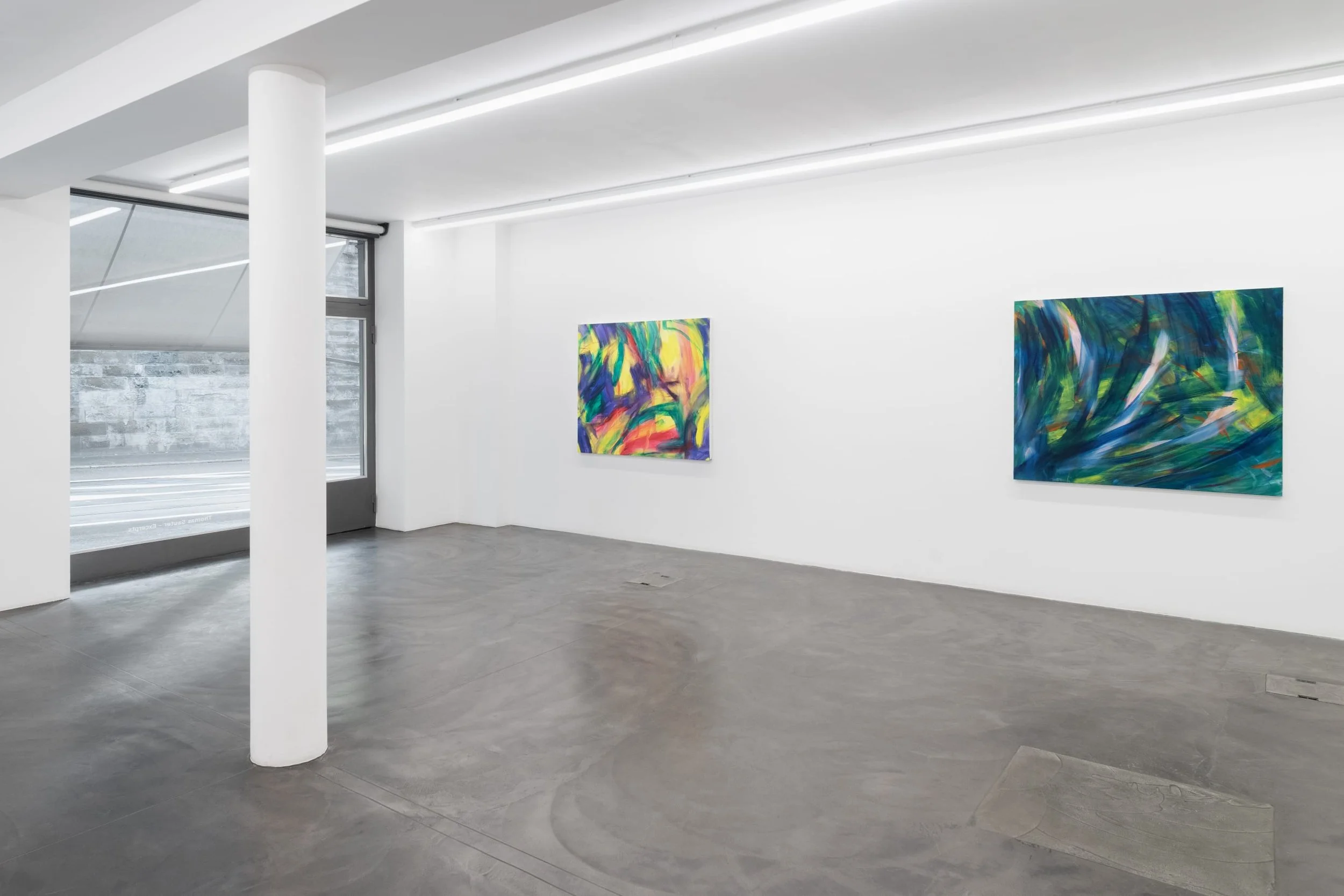 The paintings on exhibition are unquestionably abstract, colour holds the unformed and lines the unstructured. What seeps beneath the canvas is a practice Thomas Sauter has pursued for the years before, and six years during his relationship with Bernheim Gallery.